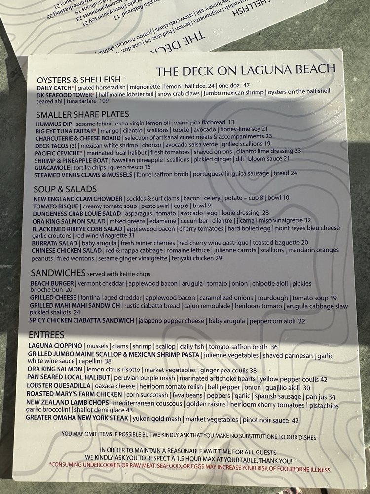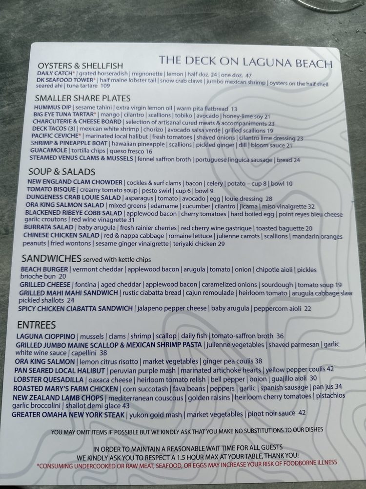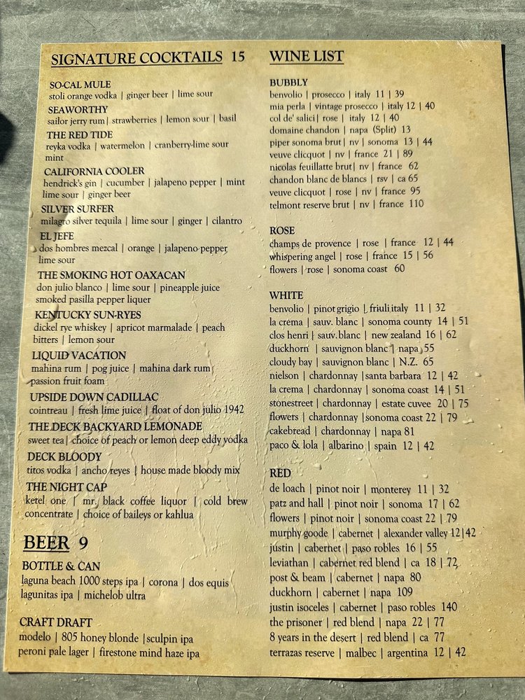 The Deck On Laguna Beach is a sought-after spot, situated right on the sand overlooking the stunning beach. With a diverse menu featuring New American cuisine and fresh seafood, this cocktail bar offers a range of vegan and vegetarian options. The restaurant provides a picturesque setting for lunch or dinner, with outdoor seating and breathtaking sunset views. The mahi sandwich comes highly recommended, as well as other dishes like the clam chowder, shrimp and scallop pasta, and tuna tartare. The attentive staff and relaxing atmosphere make dining here a delightful experience. The Deck On Laguna Beach is not just a restaurant, it's a destination where you can savor delicious food while basking in the beauty of Laguna Beach.
